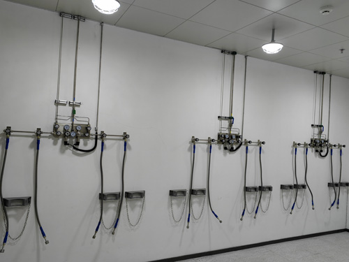 7.氣瓶間內保管的氣瓶通過帶防倒鏈的氣瓶放置架放置,氣瓶放置架更加堅固實用、整齊普定。氣瓶放置架通過鋁各種合金設計制作而成。